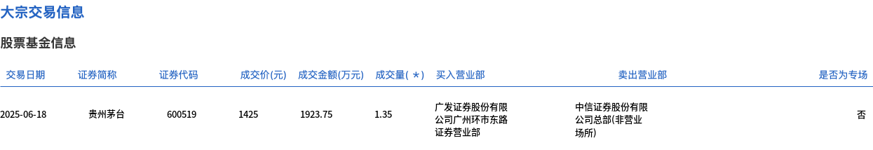 6月18日,贵州茅台大宗交易成交1.35万股,成交额1923.75万元,占当日总成交额的0.43%,成交价1425元股票配资信息,较市场收盘价1425元持平。